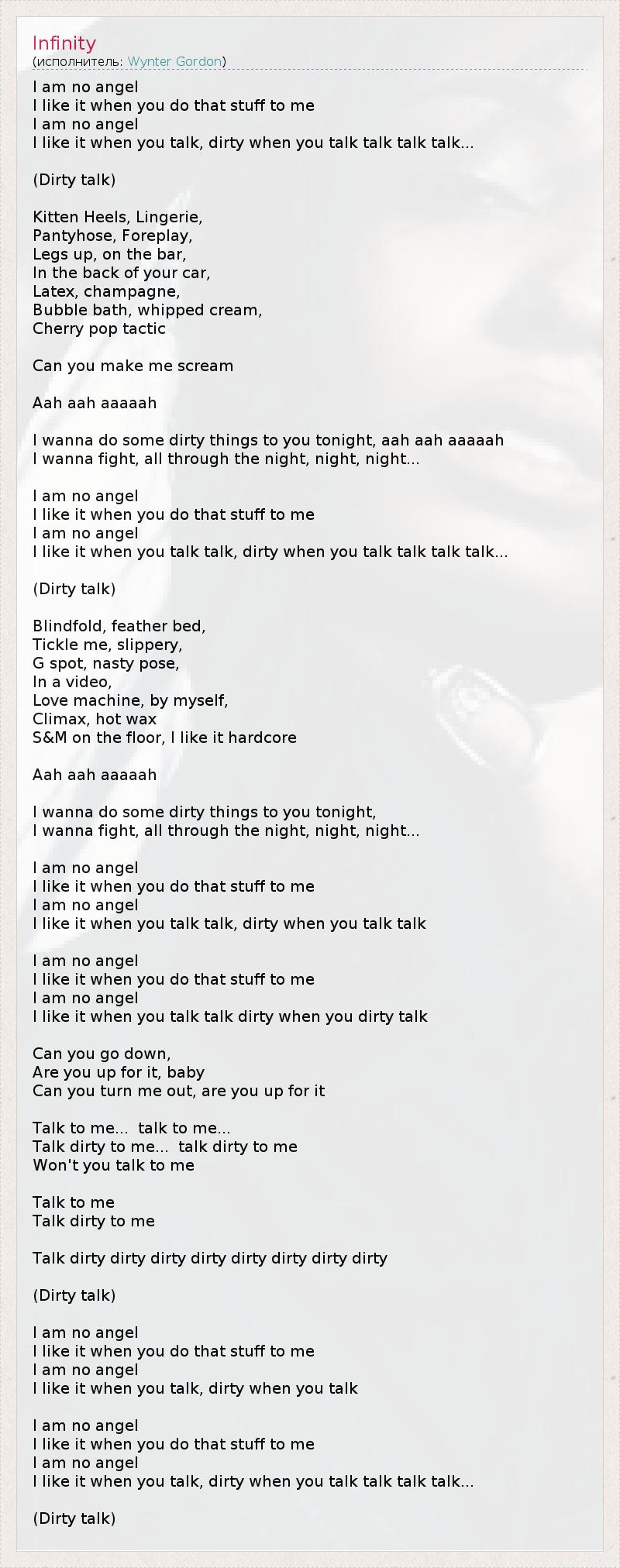 I like it when you talk talk dirty when you dirty talk