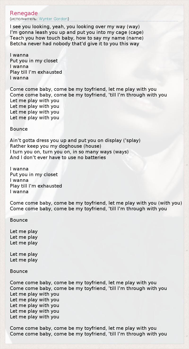 Come come baby, come be my toyfriend, let me play with you (with you)