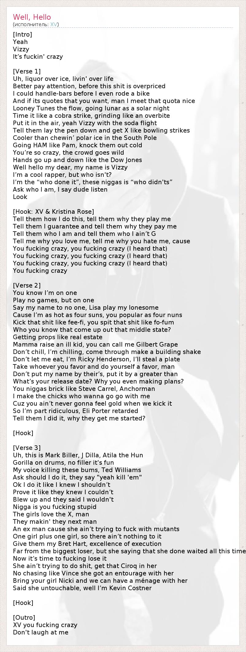 You fucking crazy, you fucking crazy (I heard that)