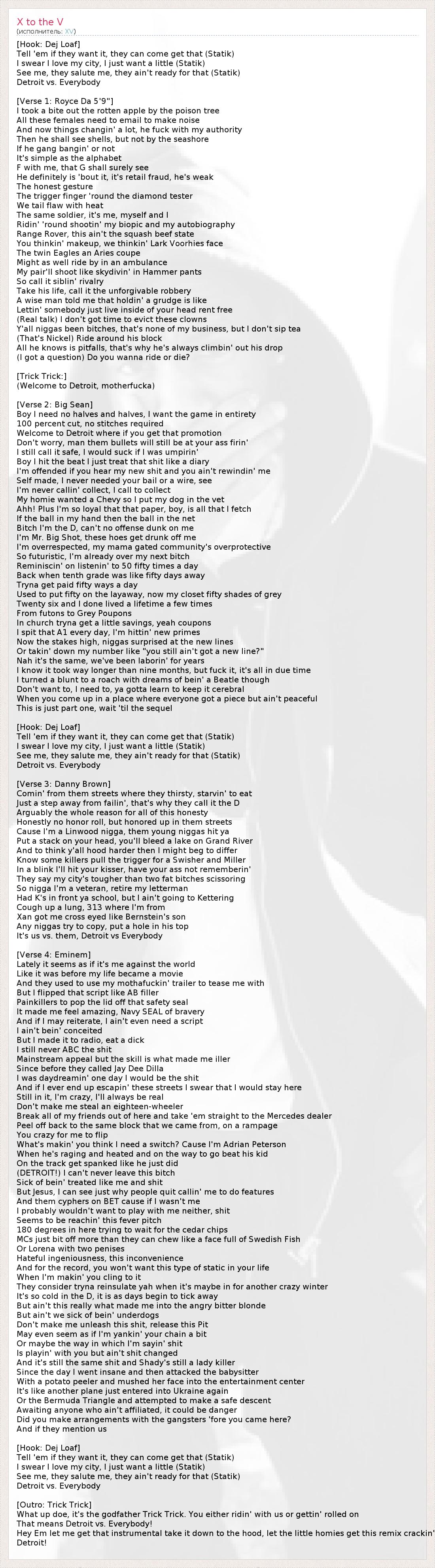 30 – Говорит о второй части песни "Detroit Vs Everybody" (Детройт против Всех). Позже в песне об этом скажет также Trick Trick (Трик Трик).