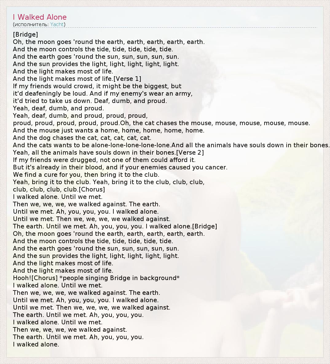 А как ты думаешь, о чем песня "I Walked Alone" ?