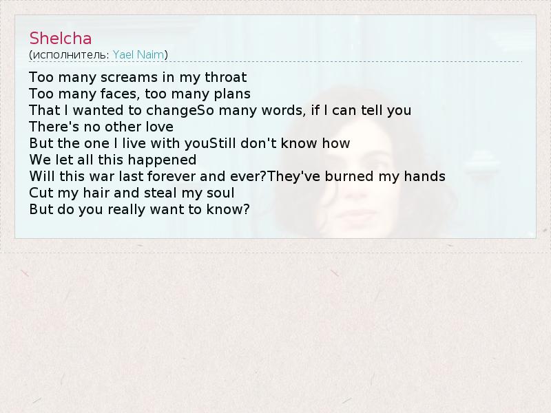 Это интересно:Yael Naim – израильско-французская исполнительница песен собственного сочинения. Певица получила мировую известность в 2008 благодаря тому, что ее песню «New Soul» компания «Apple» использовала для презентации ноутбука MacBook Air. Успех композиции сделал Yael Naim первой израильской певицей, занявшей высшие места в музыкальных чартах США.История Yael Naim родилась... продолжение
