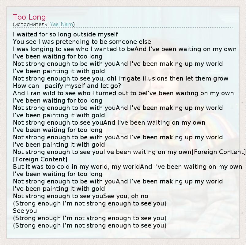 Not strong enough to see youI've been waiting on my own[Foreign Content]