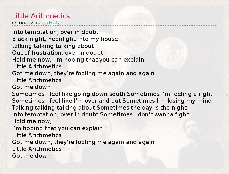 А как ты думаешь, о чем песня "Little Arithmetics" ?