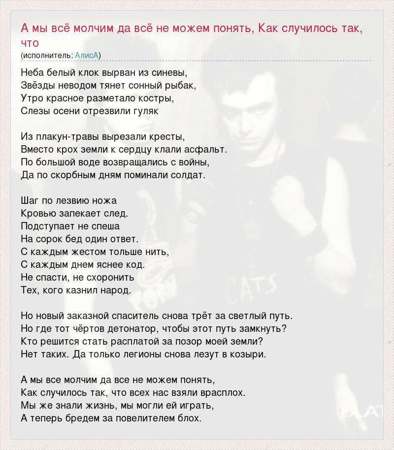 А мы всё молчим да всё не можем понять, Как случилось так, что