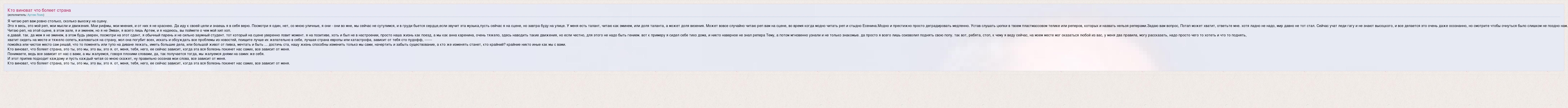 Я читаю реп вам ровно столько, сколько выхожу на сцену. Это я весь, это мой реп, мои мысли и движения. Мои рифмы, мои мнения, и от них я не краснею. Да иду к своей цели и знаешь я в себя верю. Посмотри я один, нет, со мною уличные, я они - они во мне, мы сейчас не сутулимся, и в груди бьется сердце,если звучит эта музыка,пусть сейчас я на сцене, но завтра буду на улице. У меня есть талант, читаю как эминем, или доля таланта, а может доля везения. Может вовсе случайно читаю реп вам на сцене, во время когда модно читать реп и стыдно Есенина.Модно и престижно просто деградировать медленно. Устав слушать цюпки в твоем пластмассовом телике или реперов, которых и назвать нельзя реперами.Задаю вам вопрос, Потап может хватит, ответьте мне. хотя ладно не надо, мир давно не тот стал. Сейчас учат леди гагу и не знают высоцкого, и все делается это очень даже осознанно, но смотрите чтобы очнуться было слишком не поздно нам. Читаю реп, на этой сцене, в этом зале, я и эминем, но я не Эмван, я всего лишь Артем, и я надеюсь, вы поймете о чем мой хип хоп. е.давай. так. да мем я не эминем, в этом будь уверен, посмотри на этот сдент, я обычный парень и не сильно заумный студент. тот который на сцене уверенно ловит момент. я на позитиве, хоть и был не в настроении, просто наша жизнь как поезд, а мы как анна каренина, очень тяжело, здесь наводить такие движения, но если честно, для этого не надо быть гением. вот к примеру я сидел себе тихо дома, и никто наверное не знал репера Тему, а потом мгновенно узнали и не только знакомые. да просто я всего лишь соизволил поднять свою попу. так вот, ребята, стоп, к чему я веду сейчас, на моем месте мог оказаться любой из вас, у меня два правила, могу рассказать, надо просто чего то хотеть и что то поднять, хватит сидеть на месте и тяжело сопеть,жаловаться на страну, мол она погубит всех, искать и обсуждать все проблемы из новостей, поищите лучше их желательно в себе, лучшая страна европы или катастрофа, зависит от тебя сто пудофф, ------ помойка или чистое место сам решай, что то поменять или тупо на диване лежать, иметь большие дела, или большой живот от пивка, мечтать и быть ... достичь ста, нашу жизнь способны изменить только мы сами, начертить и забыть существование, а кто же изменять станет, кто крайний? крайние никто иные как мы с вами. Кто виноват, что болеет страна, это ты, это мы, это вы, это я. от, меня, тебя, него, ее сейчас зависит, когда эта вся болезнь покинет нас самих, все зависит от меня. Понимаете, ведь все зависит от нас с вами, а мы жалуемся, говоря плохими словами, да, так получается тогда, мы жалуемся днями на самих же себя. И этот припев подходит каждому и пусть каждый читая со мною скажет, ну правильно осознав мои слова, все зависит от меня. Кто виноват, что болеет страна, это ты, это мы, это вы, это я. от, меня, тебя, него, ее сейчас зависит, когда эта вся болезнь покинет нас самих, все зависит от меня.