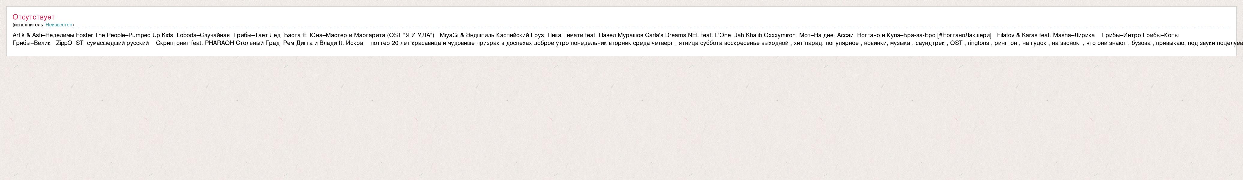 Artik & Asti–Неделимы Foster The People–Pumped Up Kids Loboda–Случайная Грибы–Тает Лёд Баста ft. Юна–Мастер и Маргарита (OST "Я И УДА") MiyaGi & Эндшпиль Каспийский Груз Пика Тимати feat. Павел Мурашов Carla's Dreams NEL feat. L'Оne Jah Khalib Oxxxymiron Мот–На дне Ассаи Ноггано и Купэ–Бра-за-Бро [#НогганоЛакшери] Filatov & Karas feat. Masha–Лирика Грибы–Интро Грибы–Копы Грибы–Велик ZippO ST сумасшедший русский Скриптонит feat. PHARAOH Стольный Град Рем Дигга и Влади ft. Искра поттер 20 лет красавица и чудовище призрак в доспехах доброе утро понедельник вторник среда четверг пятница суббота воскресенье выходной , хит парад, популярное , новинки, музыка , саундтрек , OST , ringtons , рингтон , на гудок , на звонок , что они знают , бузова , привыкаю, под звуки поцелуев
