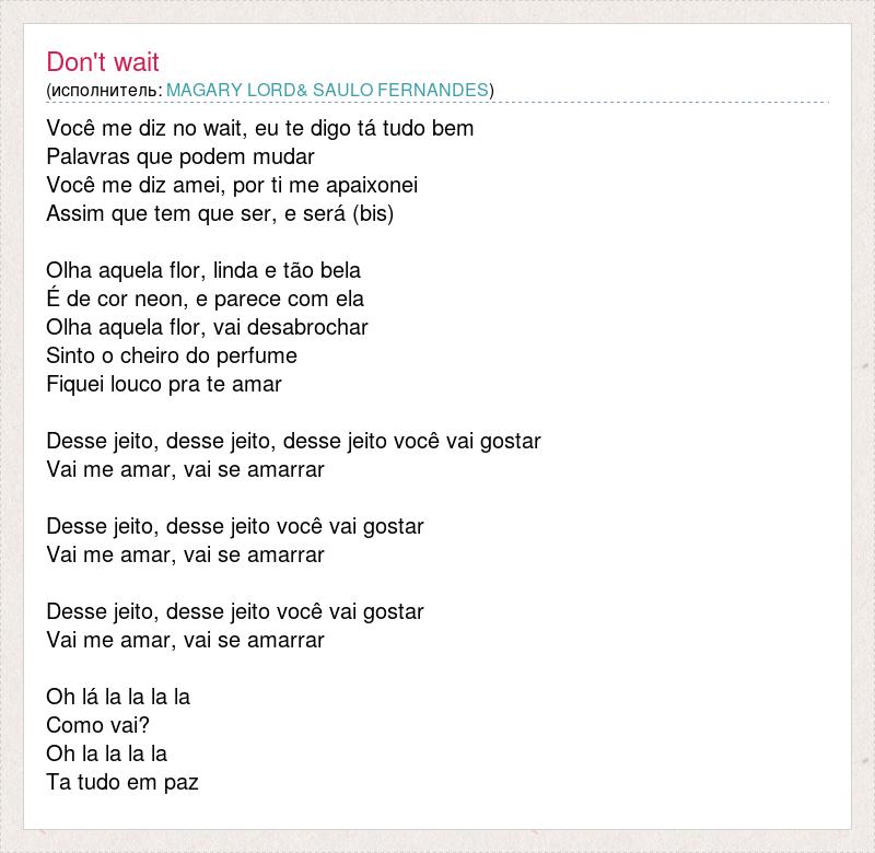 А как ты думаешь, о чем песня "Você me diz no wait, eu te digo tá tudo bem" ?