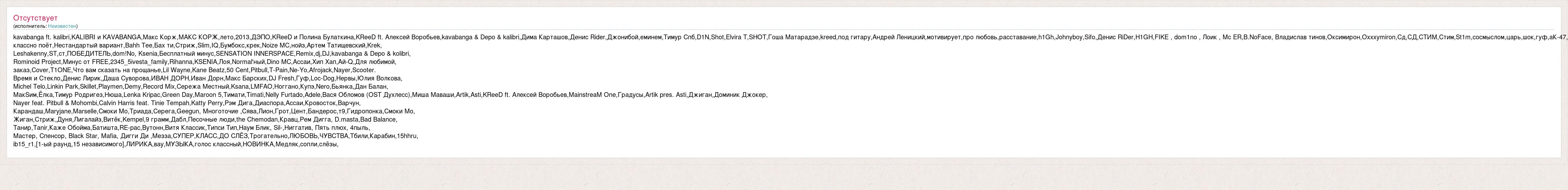 kavabanga ft. kalibri,KALIBRI и KAVABANGA,Макс Корж,МАКС КОРЖ,лето,2013,ДЭПО,KReeD и Полина Булаткина,KReeD ft. Алексей Воробьев,kavabanga & Depo & kalibri,Дима Карташов,Денис Rider,Джонибой,еминем,Тимур Спб,D1N,Shot,Elvira T,SHOT,Гоша Матарадзе,kreed,под гитару,Андрей Леницкий,мотивирует,про любовь,расставание,h1Gh,Johnyboy,Sifo,Денис RiDer,H1GH,FIKE , dom1no , Лоик , Mc ER,B.NoFace, Владислав тинов,Оксимирон,Oxxxymiron,Сд,СД,СТИМ,Стим,St1m,сосмыслом,царь,шок,гуф,аК-47, классно поёт,Нестандартый вариант,Bahh Tee,Бах ти,Стриж,Slim,IQ,Бумбокс,крек,Noize MC,нойз,Артем Татищевский,Krek, Leshakenny,ST,ст,ПОБЕДИТЕЛЬ,dom!No, Ksenia,Бесплатный минус,SENSATION INNERSPACE,Remix,dj,DJ,kavabanga & Depo & kolibri, Rominoid Project,Минус от FREE,2345_5ivesta_family,Rihanna,KSENIA,Лоя,Normal'ный,Dino MC,Ассаи,Хип Хап,Ай-Q,Для любимой, заказ,Cover,T1ONE,Что вам сказать на прощанье,Lil Wayne,Kane Beatz,50 Сent,Pitbull,T-Pain,Ne-Yo,Afrojack,Nayer,Scooter. Время и Стекло,Денис Лирик,Даша Суворова,ИВАН ДОРН,Иван Дорн,Макс Барских,DJ Fresh,Гуф,Loc-Dog,Нервы,Юлия Волкова, Michel Telo,Linkin Park,Skillet,Playmen,Demy,Record Mix,Сережа Местный,Ksana,LMFAO,Ноггано,Купэ,Nero,Бьянка,Дан Балан, МакSим,Ёлка,Тимур Родригез,Нюша,Lenka Kripac,Green Day,Maroon 5,Тимати,Timati,Nelly Furtado,Adele,Вася Обломов (OST Духлесс),Миша Маваши,Artik,Asti,KReeD ft. Алексей Воробьев,MainstreaM One,Градусы,Artik pres. Asti,Джиган,Доминик Джокер, Nayer feat. Pitbull & Mohombi,Calvin Harris feat. Tinie Tempah,Katty Perry,Рэм Дига,Диаспора,Ассаи,Кровосток,Варчун, Карандаш,Maryjane,Marselle,Смоки Мо,Триада,Серега,Geegun, Многоточие ,Сява,Лион,Грот,Цент,Бандерос,т9,Гидропонка,Смоки Мо, Жиган,Стриж,Дуня,Лигалайз,Витёк,Kempel,9 грамм,Дабл,Песочные люди,the Chemodan,Кравц,Рем Дигга, D.masta,Bad Balance, Танир,Tanir,Каже Обойма,Батишта,RE-pac,Вутонн,Витя Классик,Типси Тип,Наум Блик, Sil-,Ниггатив, Пять плюх, 4пыль, Мастер, Спенсор, Black Star, Mafia, Дигги Ди ,Мезза,СУПЕР,КЛАСС,ДО СЛЁЗ,Трогательно,ЛЮБОВЬ,ЧУВСТВА,Тбили,Карабин,15hhru, ib15_r1,[1-ый раунд,15 независимого],ЛИРИКА,вау,МУЗЫКА,голос классный,НОВИНКА,Медляк,сопли,слёзы,